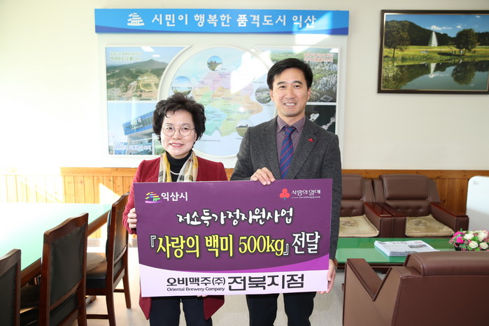 한편 OB맥주 전주지점은 2014년부터 매년 익산시에 쌀과 현금을 기탁했으며 올 상반기에는 어려운 청소년을 위해 위생용품을 지원한 바 있다.