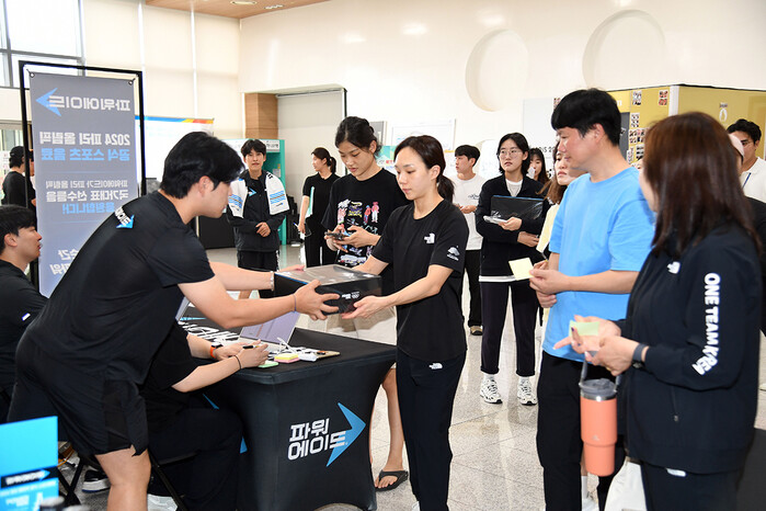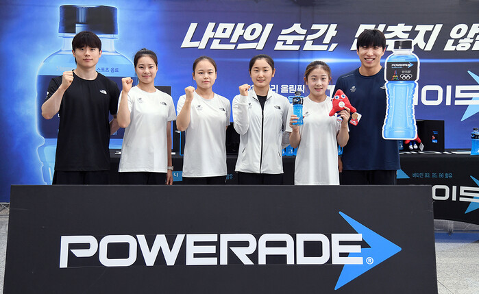 ▲ 2024 파리올림픽 공식 스포츠음료 파워에이드가 20일 오전 충청북도 진천군에 위치한 진천 국가대표선수촌을 찾아 국가대표 선수들을 응원하고, 선수들을 위해 특별히 마련한 파워에이드 스페셜 기프트를 전달했다.(사진제공=한국 코카-콜라사) |