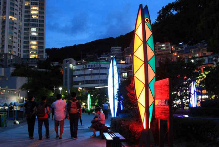 수변공원에는 부산 시어이자 서구 구어인 고등어를 모티브로 한 LED 열주등 9기가 높이 4m, 폭 42∼65㎝ 규모로 고등어를 디자인화해 조형미를 살렸으며 스펙트럼과도 같은 다양한 색깔의 조명이 몇 초 간격으로 계속 바뀌면서 환상적인 분위기를 연출하고 있다.