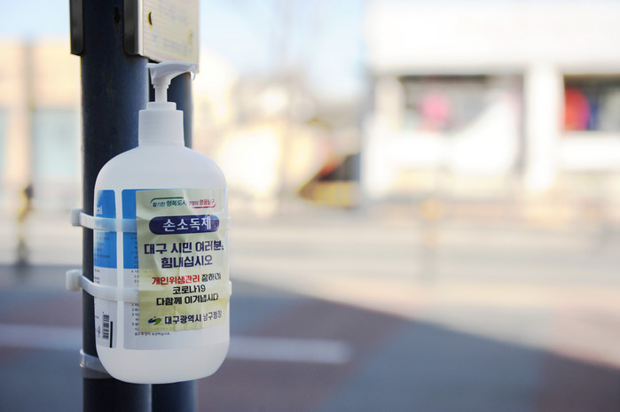 [로컬세계 박세환 기자]대구 남구는 지난 11일 코로나19 감염 확산 차단을 위해 남구 관내 버스승강장 160개소에 고정식 손소독제를 비치했다.