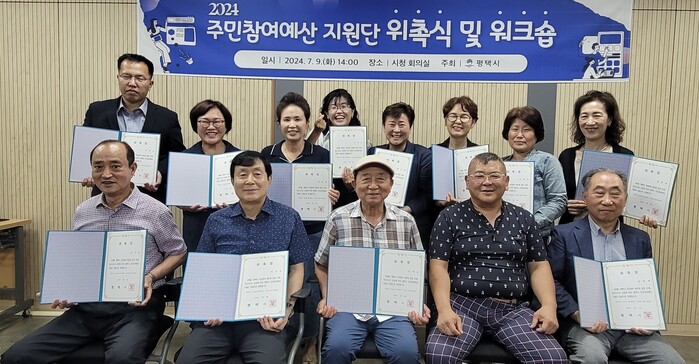 ▲ 평택시는 지난 9일 2024년 주민참여예산 지원단 워크숍을 개최해 위촉식과 2024년 주민참여예산 추진사업 서면 모니터링 활동을 진행했다.(평택시 제공) |