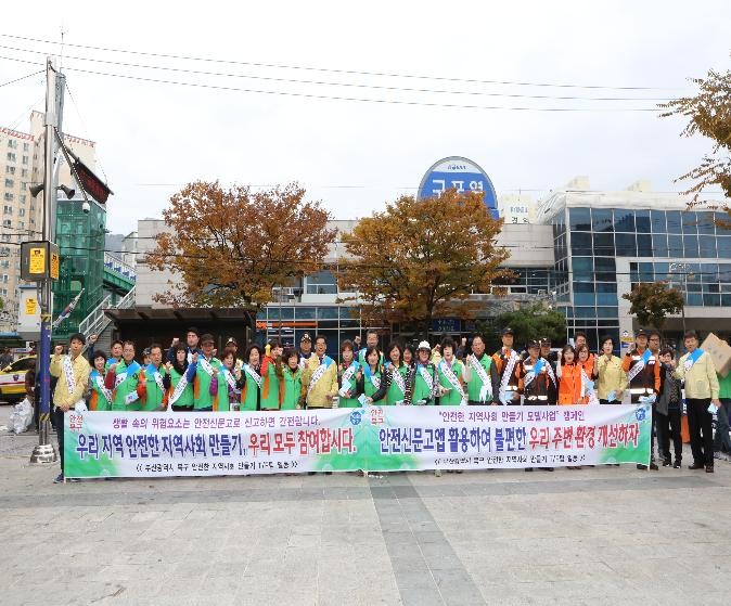 북구청 외 각 유관기관 및 민간단체들은 교통·화재·자살·감염병·범죄 등 교육 홍보자료를 시민들에게 일일이 나눠주며 안전사고 사망자수 감축에 대한 열의를 보였다.