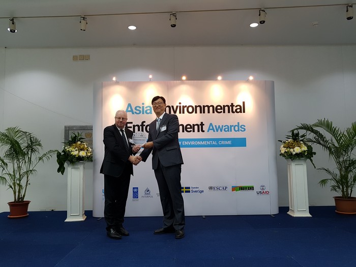 ‘아시아 환경범죄 단속 공로상’은 유엔환경계획이 환경범죄 단속을 위해 노력하는 기관, 개인의 노력을 치하하고 환경범죄의 심각성에 대한 대중의 인식을 높이기 위해 2014년 제정된 상이다.