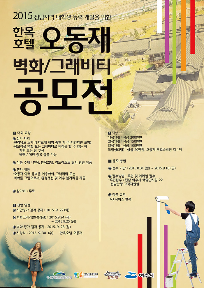 송영진 전남관광 대표이사는 “지역공헌사업의 일환으로 전남지역 대학생들의 예술 능력을 향상시키고, 오동재 호텔 주변의 환경을 개선하기 위해 이같은 행사를 마련했다”며 “많은 학생들이 응모해 주길 기대한다”고 전했다.