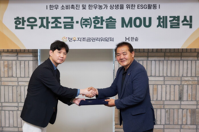 한우자조금관리위원회(위원장 이동활, 이하 한우자조금)가 6일 국내 대표 도시락 프랜차이즈 ㈜한솥(이하 한솥도시락)과 ‘한우소비 촉진 및 한우농가 상생을 위한 ESG활동’ 업무협약을 체결했다고 밝혔다.