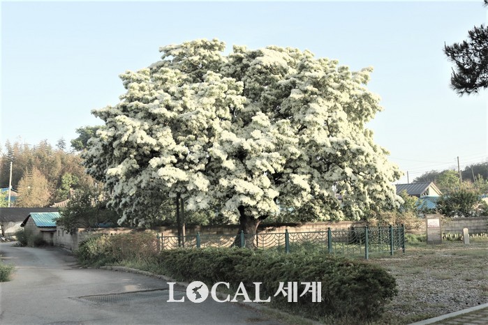▲천연기념물 제183호로 지정된고창군 대산면 중산리 이팝나무. 김경락 기자. |