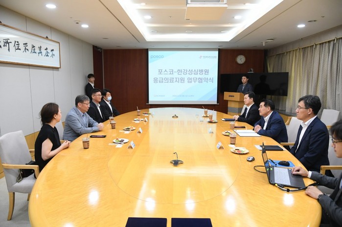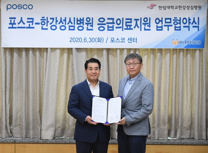 한림대학교한강성심병원과 포스코가 6월 30일 서울 강남구 포스코센터에서 응급의료지원 업무협약을 맺었다.