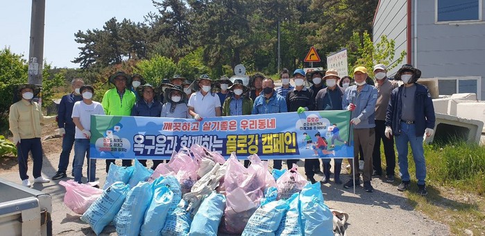 이번 환경정비는 지난 4일 옥구읍 이장협의회 회원들과 직원 40여명이 함께 산책이나 조깅을 하면서 동시에 쓰레기를 줍는 ‘플로깅’ 캠페인을 진행했다