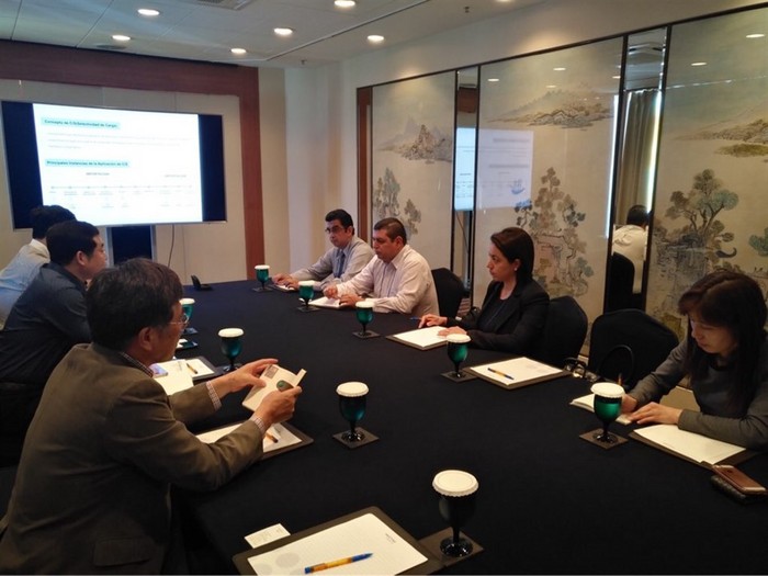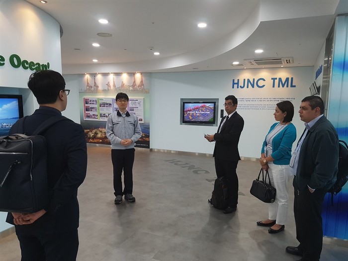 | ▲'관세행정 현대화 지원사업'으로 초청된 코스타리카 관세공무원들이 18일 부산 소재 한진 신항터미널을 홍보관을 견학하고, 터미널 반입 및 하역절차 등에 대한 설명을 듣고 있다. |