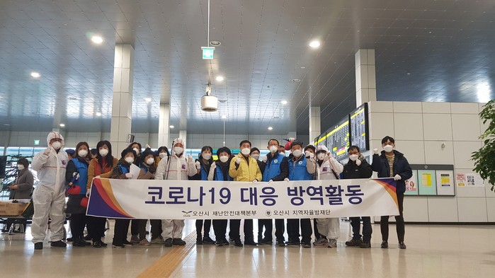 경기 오산시지역자율방재단은 지난 24일 코로나19 확산 방지를 위해 오산역 환승센터 일원에서 자체 방역활동을 실시했다.