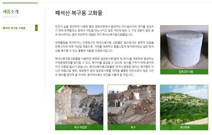 특히 A사의 홈페이지에 해당 제품을 폐석산 복구용이라고 홍보하고 있기에 의심의 여지가 없다.