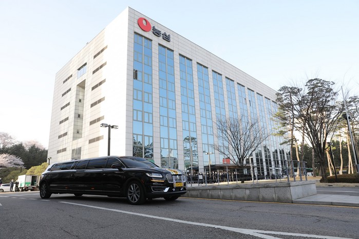 | ▲故 신춘호 회장을 태운 영구차가 농심 사옥을 나서고 있다. [농심 제공] |