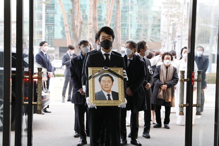 이날 오전 5시 빈소인 서울대병원 장례식장에서 발인 이후 운구 행렬이 고인의 서울 용산구 자택을 들른 후 동작구 신대방동 농심 본사 도착, 유족과 농심 임직원 등이 참석한 가운데 영결식이 진행됐다.