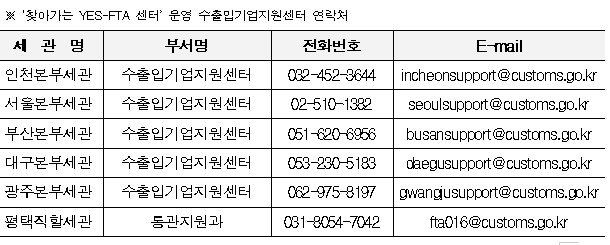 관세청 관계자는 “앞으로 YES FTA 센터를 통해 기업 상담 수요를 최대한 반영해 우리 수출기업이 FTA 활용으로 혜택을 누릴 수 있도록 밀착지원 할 계획”이라고 말했다.