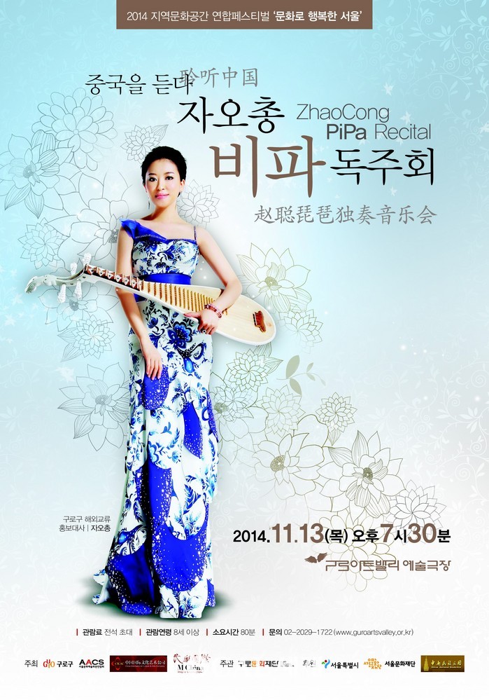 [로컬세계 김장수 기자] 구로구가 13일 구로아트밸리 예술극장에서 구로구 해외교류 홍보대사이자 중국 수석 비파리스트인 자오총(여·38)의 비파독주회를 개최한다.