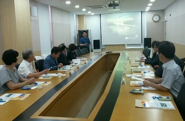 ▲20일 연천군의회 의원들이 한반도 통일미래센터를 방문해 센터 관계자로부터 주요 사업에 대한 보고를 받고 있다. |