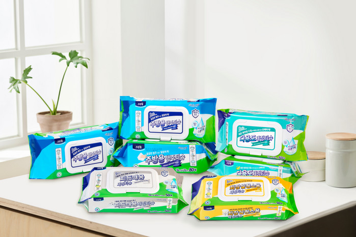신제품 ‘주방용 행주티슈’는 탈취와 기름때 제거에 효과적인 베이킹소다 성분으로 주방 곳곳의 얼룩 청소에 적합하다. ‘다용도 세정티슈’는 바이러스 감염 예방을 위한 에탄올 성분과 피부 보호 성분인 알로에 베라 성분을 함유, 일상생활 중 접촉이 잦은 대중교통 손잡이나 스마트폰 등을 가볍게 닦을 수 있는 제품이다.