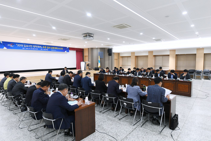 이날 보고회는 지난 8월 24일 ‘환경과 개발의 상호 공존을 통한 삶의 질 향상 방안’이라는 의제로 개최된 ‘2019 김포시민 원탁회의’ 토론에서 도출된 시민 의견인 ‘쓰레기 무단투기’, ‘무분별한 공장 난립’, ‘시민의식 교육 강화’ 등을 정책에 반영하기 위해 부서별 검토를 통해 수립된 계획을 보고하는 자리로 마련됐다.