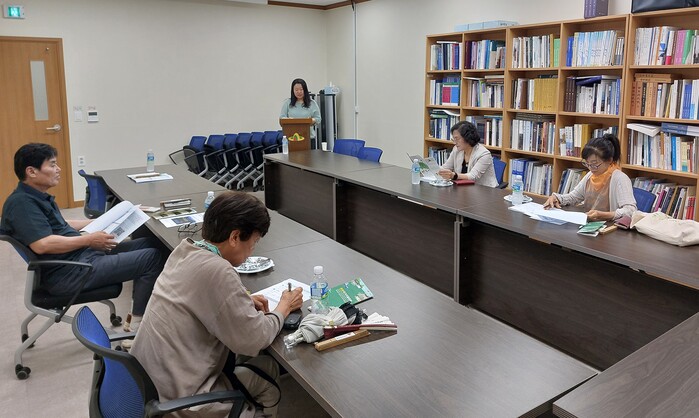 이날 간담회는 지질공원해설사 신규 양성교육 일정과 역할에 대한 설명, 지질명소 12곳의 지질학적 특징 설명으로 이어졌다.