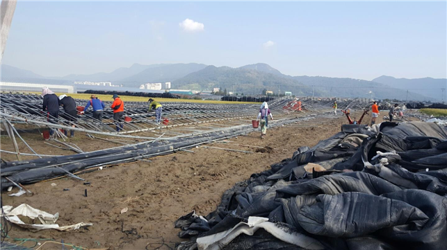 이날 봉사자들은 A씨의 비닐하우스 철거 및 복구작업을 도우며 구슬땀을 흘렸다.