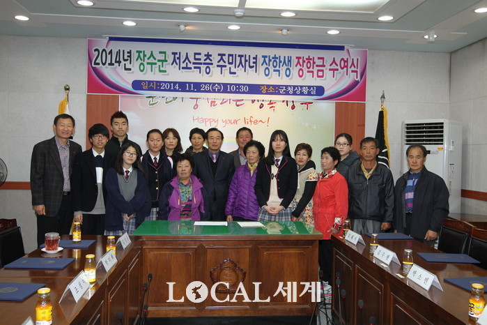 [로컬세계 김경남 기자] 장수군은 향토인재 육성과 저소득주민의 교육비 부담 최소화를 위해 26일 오전 군청 회의실에서 저소득가정 자녀 장학금 수여식을 가졌다.