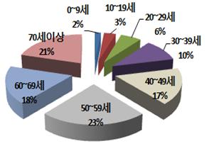 특히 50대 이상의 점유율이 61.4%를 차지했으며 70대 이상에서 연평균증가율이 전연령대 중 가장 높게 나타났다.