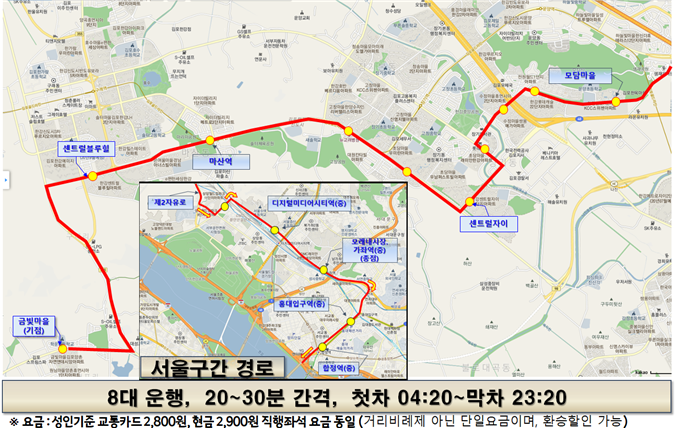 준공영제 도입으로 도와 시가 함께 노선의 적자부분을 해소함으로써 안정적인 노선의 운영이 가능하며, 앞뒤거리 80cm 이상의 넓은 좌석과 USB충전포트, 공공와이파이는 물론 기사의 친절한 대응 등 고품질 대중교통 서비스를 제공받을 수 있을 것으로 기대되고 있다.