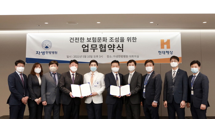 자생한방병원(병원장 이진호)은 지난 10일 현대해상화재보험 (대표이사 조용일·이성재)과 건전한 보험시장 환경 조성을 위한 업무협약(MOU)을 체결했다고 밝혔다.