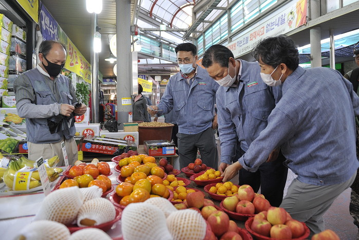 이날 장보기에는 조재구 남구청장을 비롯해 손수 장보기를 희망하는 공무원 및 기관·단체 등 예년에 비해 1/2 수준인 50 여명이 참여해 마스크 착용과 거리두기를 지키며 안전한 추석맞이 장보기 행사를 진행했다.