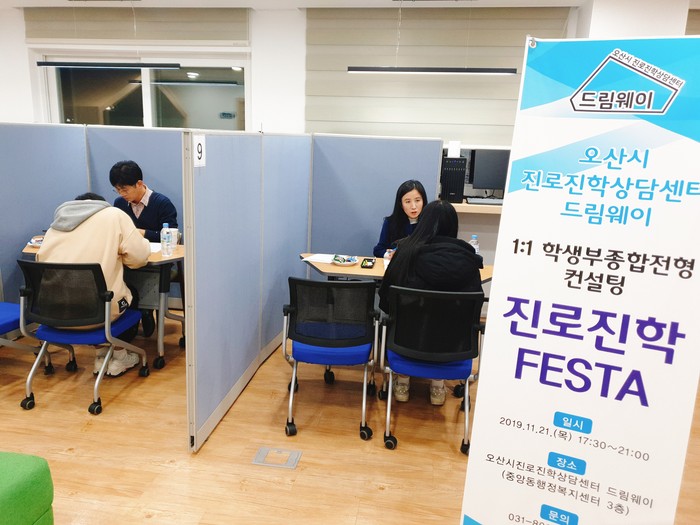 ‘진로진학FESTA’는 교육부의 2019년 고교교육 기여대학 지원사업의 일환으로 오산시와 안양대를 비롯한 5대 대학이 함께 주최했고 입학사정관 1:1 학생부종합전형 컨설팅을 제공했다.