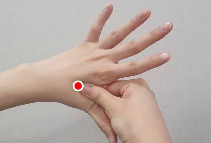 ‘노궁혈(勞宮穴)’도 소화기를 편하게 해 구급혈로 널리 쓰이는 혈자리 중 하나다. 노궁혈은 자연스럽게 주먹을 쥐었을 때 중지 끝이 손바닥에 닿는 지점에 위치한다. 손가락이나 뾰족한 물건으로 강하게 눌렀다가 천천히 풀어주면 마음이 안정되고 속이 편해지는 효과가 있다. 30초씩 양손을 번갈아 지압해 주면 된다.