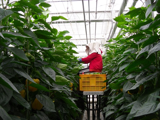 ▲전북 남원시 대강면 안병율씨 농장에서 농민이 파프리카를 수확하고 있다. |
