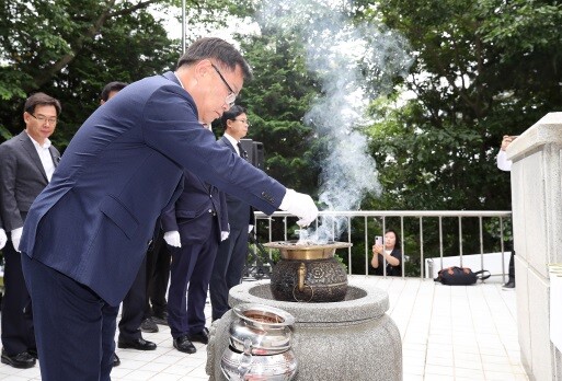 ▲ 제69회 현충일 추념식에서 홍남표 창원시장이 분향을 하고 있다. 창원시 제공 |