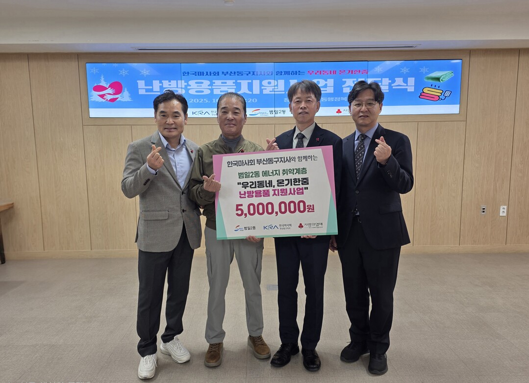 이번 전달식은 겨울철 에너지 및 식생활 취약계층의 생활 안정을 지원하기 위한 사업 추진에 앞서, 한국마사회 부산동구지사가 두 사업에 각각 500만 원씩, 총 1,000만 원의 사업비를 전달하는 자리였다.