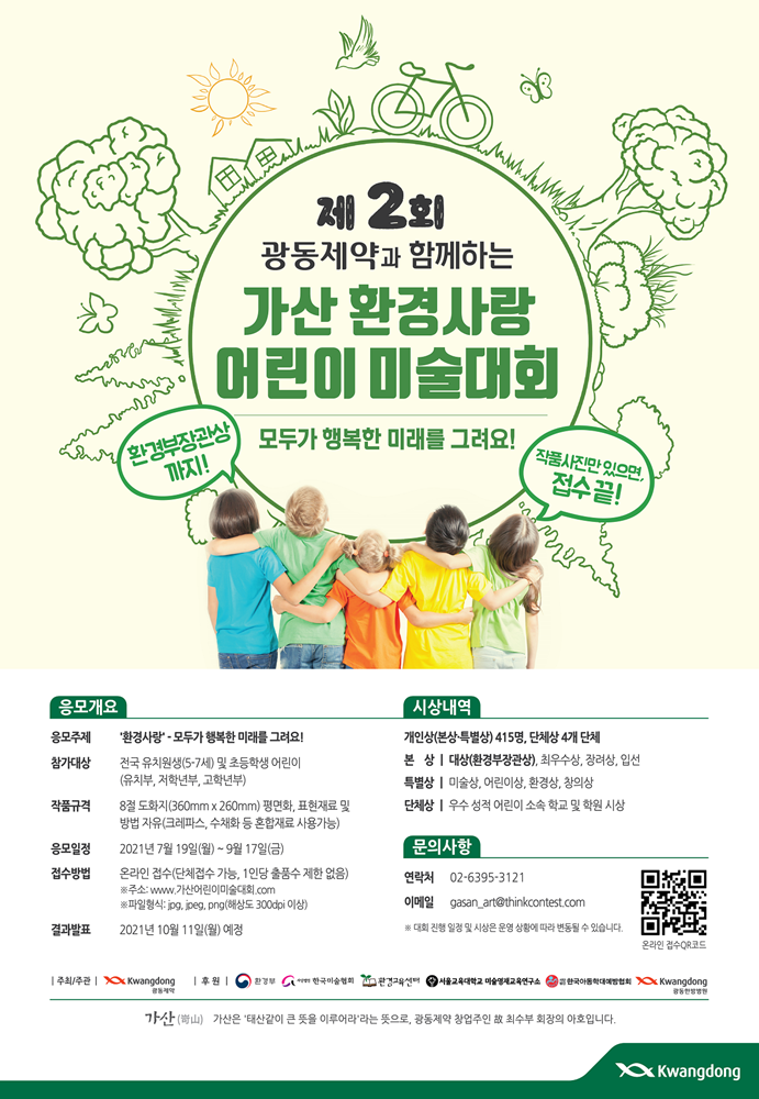 이 행사는 광동제약이 주최하고 환경부, 한국미술협회, 한국아동학대예방협회, 환경교육센터, 서울교육대학교 미술영재교육연구소, 가산의료재단 광동한방병원(이사장 이강남) 등이 후원한다.