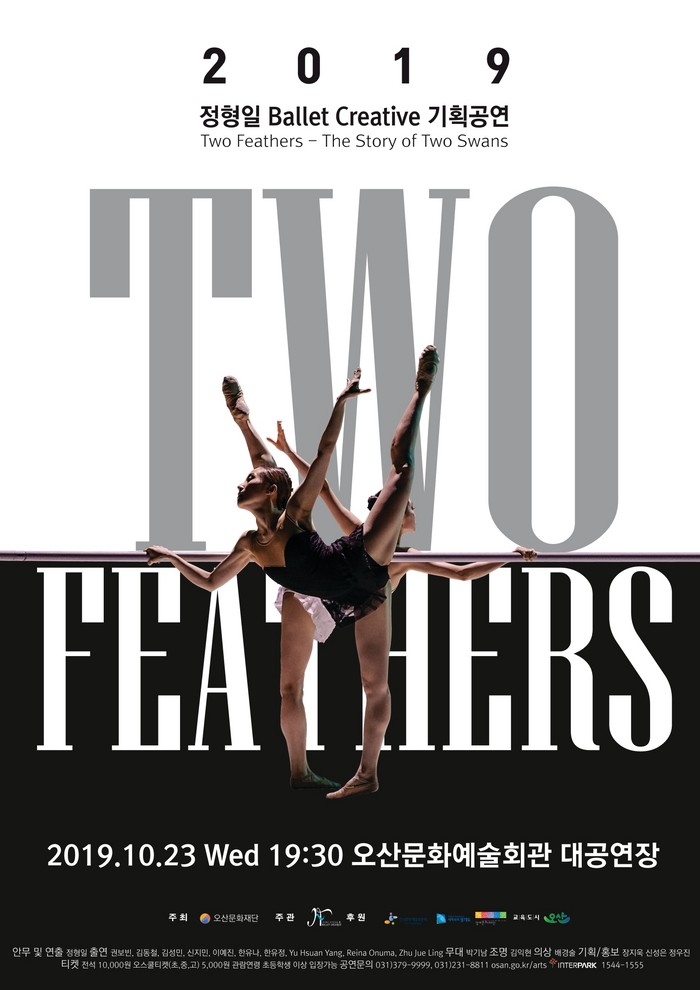 ‘Two Feathers’는 2019년 오산문화재단(이사장 곽상욱)의 공연장 상주단체로 선정된 정형일 Ballet Creative가 선보이는 기획공연으로 클래식 발레 작품 ‘백조의 호수’를 재해석하는 안무가 정형일의 백조 시리즈 중 1번째 작품이다.