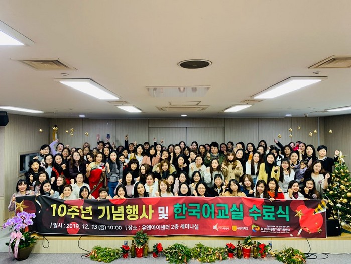[로컬세계 고용주 기자]경기 화성시 다문화가족지원센터가 지난 13일 유앤아이센터에서 설립 10주년을 맞아 기념식 및 한국어교육 수료식을 가졌다.