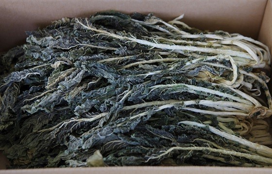 무청을 우선 가지런히 손질한 후에 통풍이 잘 되면서도 햇빛이 직접 비치지 않는 비닐하우스나 아파트 베란다 등에서 충분히 말린다.