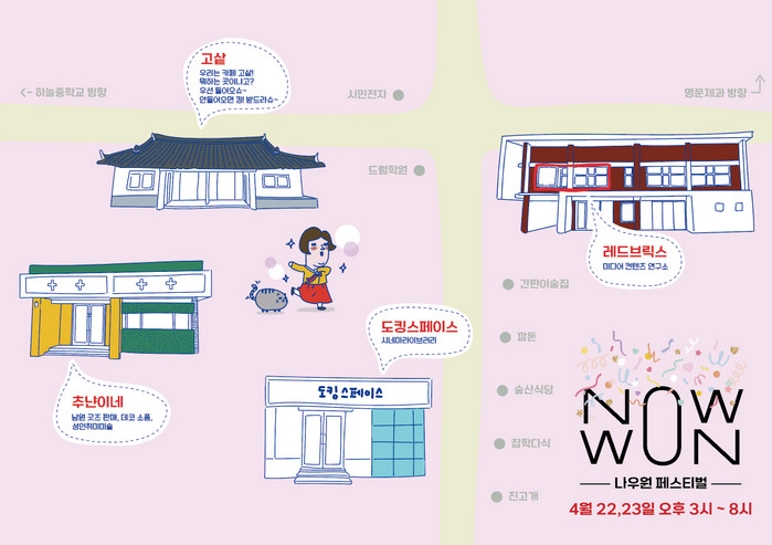 [로컬세계 이태술 기자]전북 남원시에서 도시재생 빌드업 프로젝트를 통해 발굴된 청년들의 모임인 NOWWON은(고샅, 추냔이네, 도킹스페이스 남원, 레드브릭스) 오는 22일, 23일 나우원 페스티벌을 개최할 예정이다.