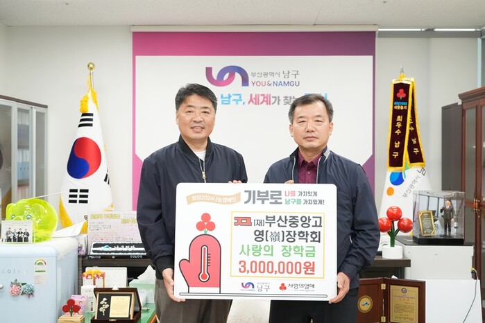 [로컬세계 부산=맹화찬 기자]부산 남구는 지난 22일 (재)부산중앙고등학교 영(嶺)장학회에서 구에 저소득 청소년을 위한 장학금 300만원을 전달했다고 23일 밝혔다.