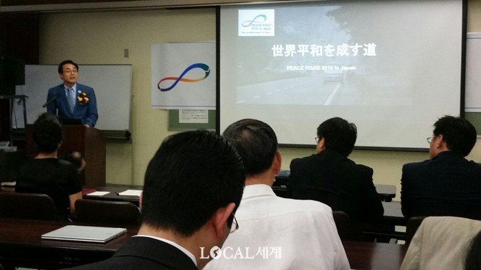 도쿠노 에이지회장은 인사말에서 “한일간에 화해와 상호발전을 위해서는 한국의 역사를 잘 이해해야 한다. 1905년 한일합방부터 1945년 해방까지 40년간 한국인에게는 아픈 과거가 있다. 특히 1895년 명성황후 살해사건은 한국인 앞에 부끄러운 일본역사였다. 문선명 선생은 ‘일본 때문에 한반도가 분단이 됐다’고 말씀했다. 한반도의 남북통일과 세계평화를 위해 책임을 지겠다는 각성의 심정으로 피스로드운동을 주최하게 됐다”고 말했다.