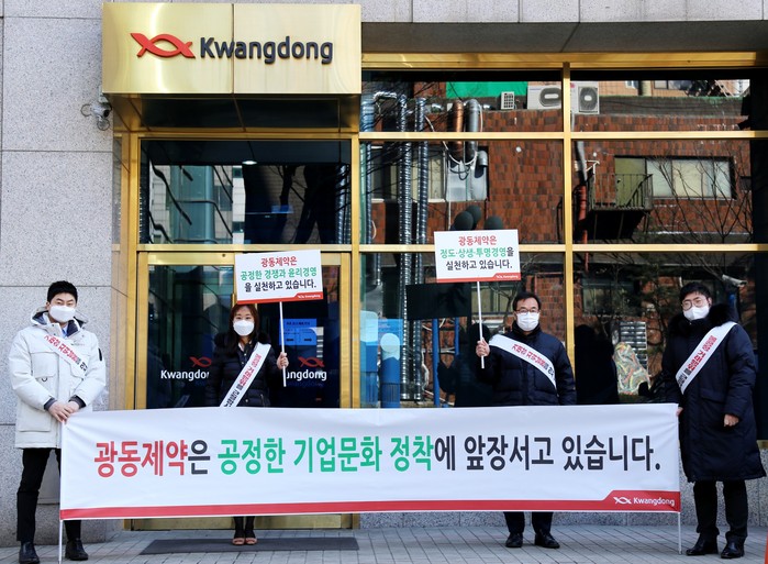 | ▲광동제약 임직원들이 윤리경영 캠페인을 펼치고 있다. |