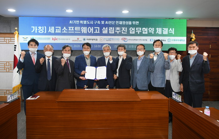 협약에는 한국생산성본부, ㈜시공테크, 아주대학교 신산업융합 기술연구센터, (사)한국블록체인산업협회, 이화여자대학교 미래교육연구소, 4차 산업혁명과 미래교육포럼, 오산상공 회의소 등 7개 미래산업 관련기관이 참여했으며, 경기도교육청, 오산교육 지원센터, 오산교육재단 등 관련 교육기관과 함께 AI 융합인재양성을 위한 공동추진 체계를 마련했다.
