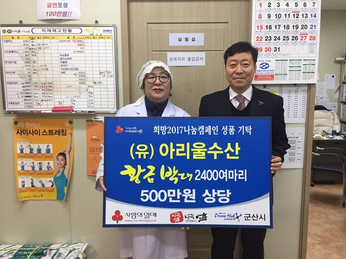 (유)아리울수산은 매년 지역 무료급식소와 사회복지시설 등에 황금박대와 황금조기를 후원하는 등 이웃과 더불어 살아가는 사회적 기업으로 거듭나고 있다.