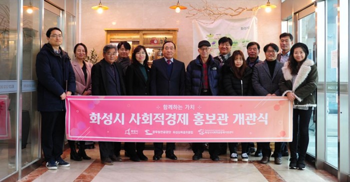 | ▲사회적경제 홍보관 개관식 기념촬영 모습.(화성시 제공) |