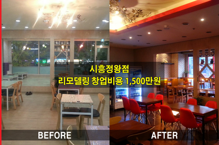 시흥정왕점의 경우 40평 매장을 리모델링하는데 1500만의 비용이 들어갔다. 철거, 닥트, 파샤드 등 인테리어를 위한 모든 공사가 턴키로 이뤄졌다. 대다수 프랜차이즈들이 기본 인테리어와 철거, 닥트, 파샤드 비용을 개별 책정한 것과 상반된 것. 그럼에도 비용은 절반 이상 줄였다.