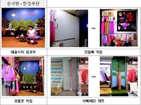 한성주단 프로젝트는 청년예술가 손서린씨가 기획해 점포내 포토존과 장신구 진열벽, 외부벽에 돌출된 배관 데코, 명함 등을 디자인 했다. 특히 포토존과 배관 데코 등은 디자인 뿐 아니라 본인이 직접 그리고 제작해 점포주의 만족도를 한층 높였다.