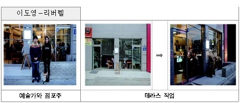 리버벨의 프로젝트를 담당한 청년예술가 이도영씨는 점포분위기에 어울리고 오래도록 편안히 즐길 수 있는 느낌의 테라스를 목표로 작업했다. 분위기가 좋은 카페들의 정보를 점주와 공유하며 작업을 진행해 만족도 높은 작품을 만들어 냈다.