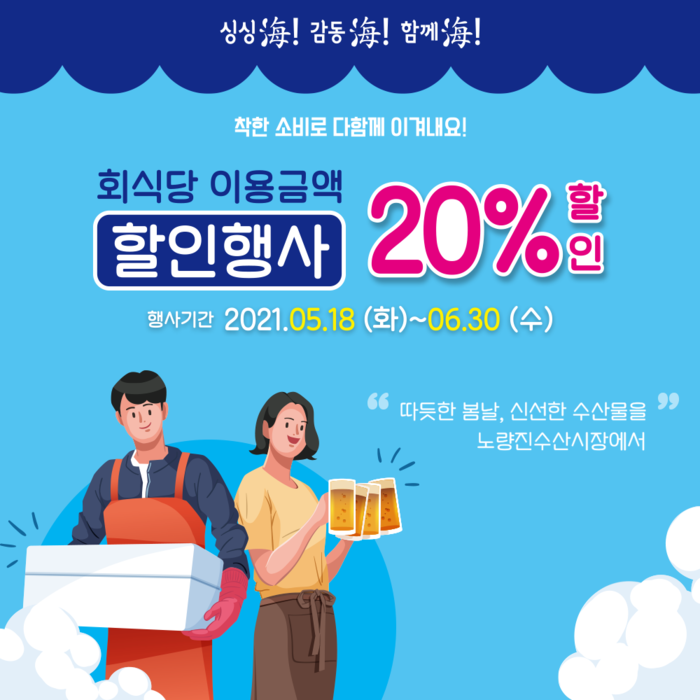 노량진수산시장 회식당 25개 전체 업소가 참여하는 이번 행사는 오는 18일부터 6월 30일까지 진행된다.