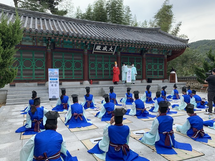[로컬세계 한용대 기자]경남 창원시는 마산향교에서 진전중학교 자유학년제 학생 20여 명을 대상으로 ‘어머니(母)와 효(孝)’를 시제로 한 조선시대 과거시험을 재현했다고 23일 밝혔다.
